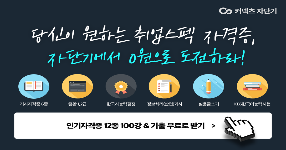 대학생 스펙완성 자단기에서! 인기자격증 12종 입문 100강 모집중!